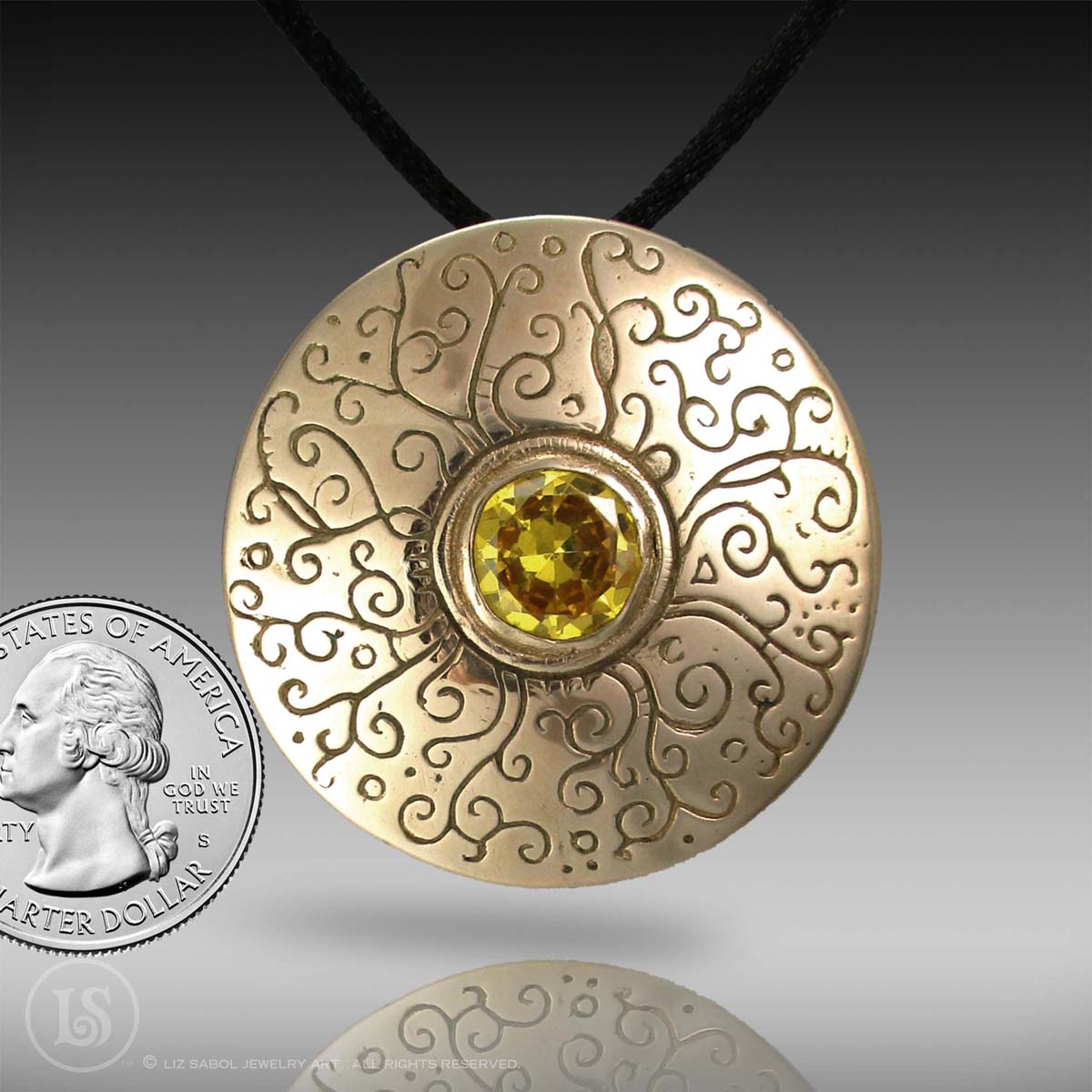 Radiance! This pendant is crafted in bronze metal clay and features a large yellow cubic zirconia.