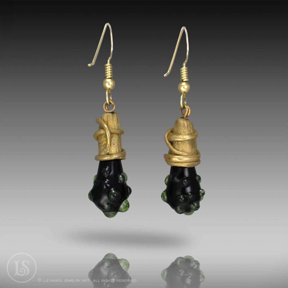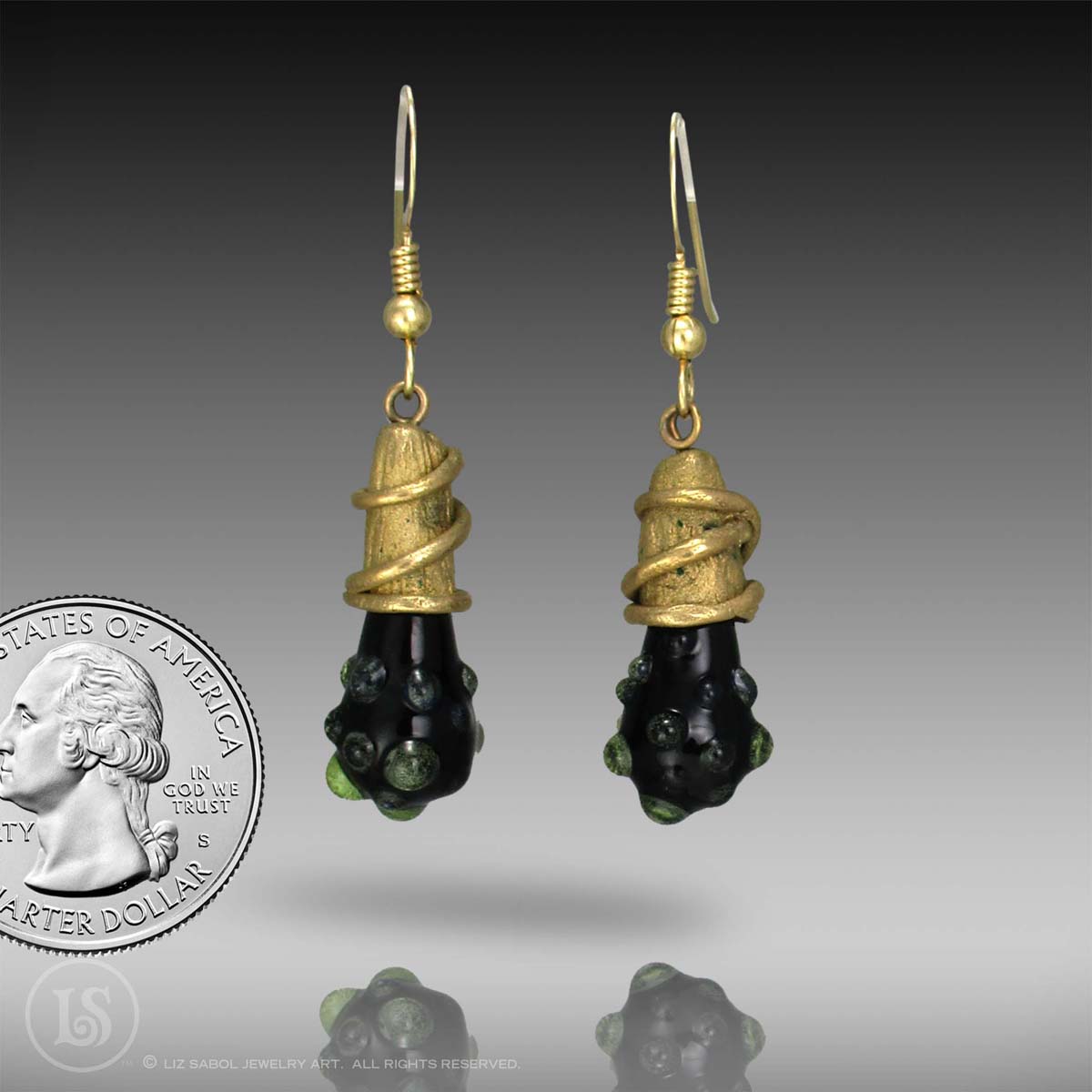 These earrings feature my lampworked borosilicate glass drops. These one-of-a-kind earrings are crafted in bronze metal clay and lampworked glass. These earrings are a bit heavier than most earrings, weighing 4 grams each.