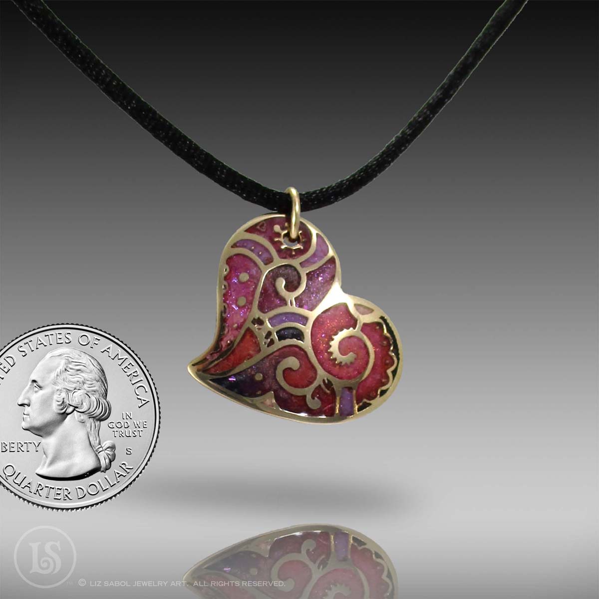 This whimsical heart-shaped pendant was inspired my good friend's daughter. It is hand-crafted in bronze metal clay, hand-painted and filled with resin.