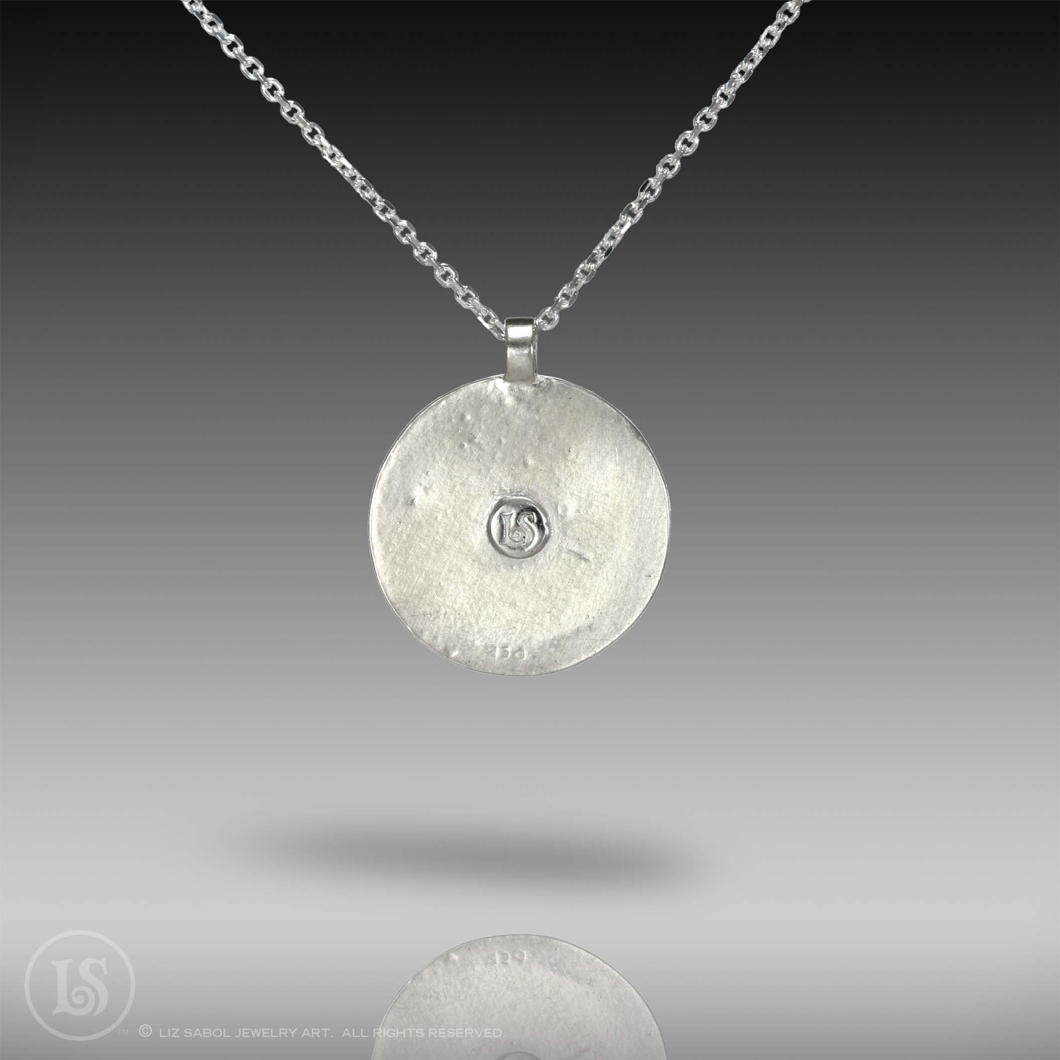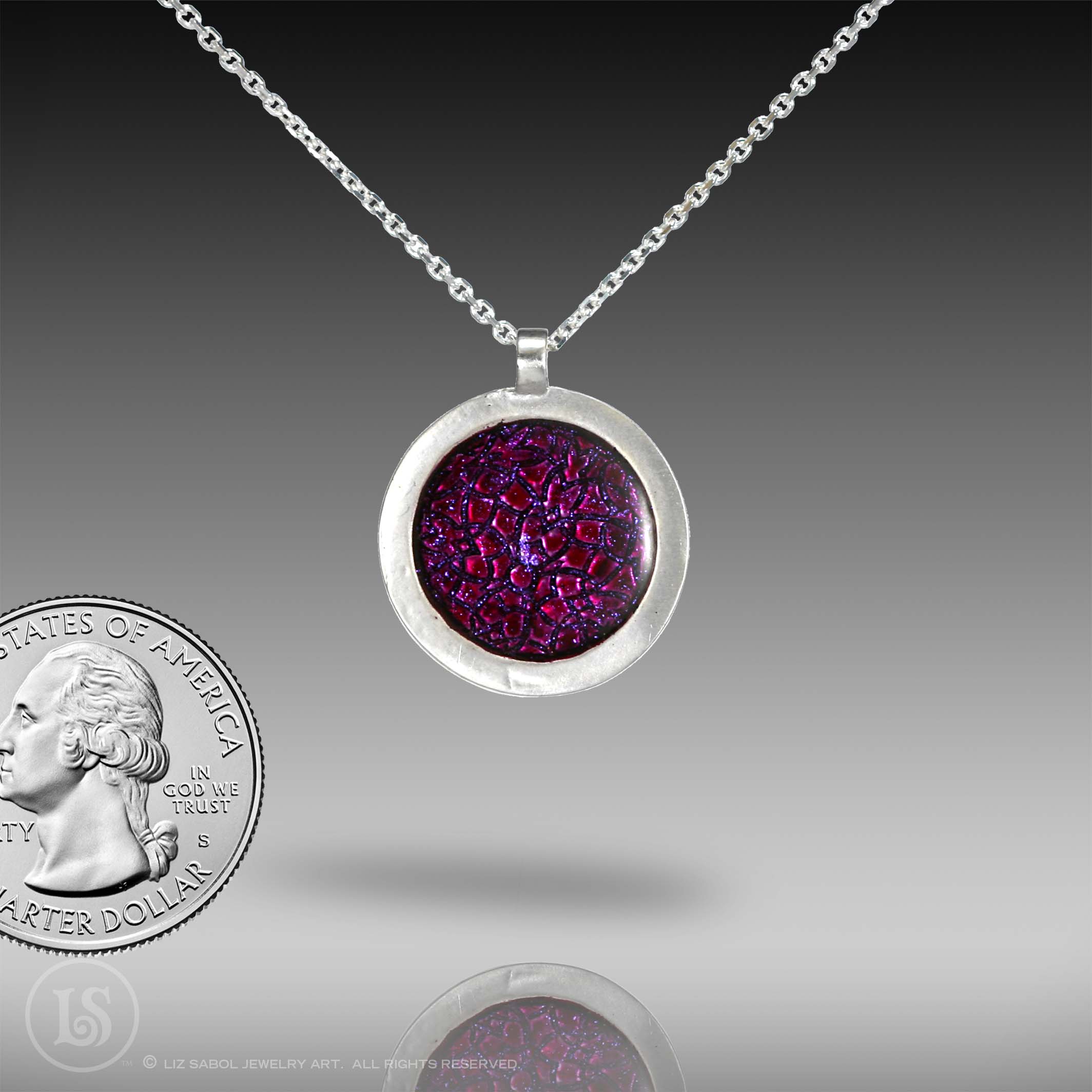 Handmade with sterling metal clay, featuring a texture that I designed, and bright shiny colors. Hand-painted and filled with resin. 18" sterling chain is included.