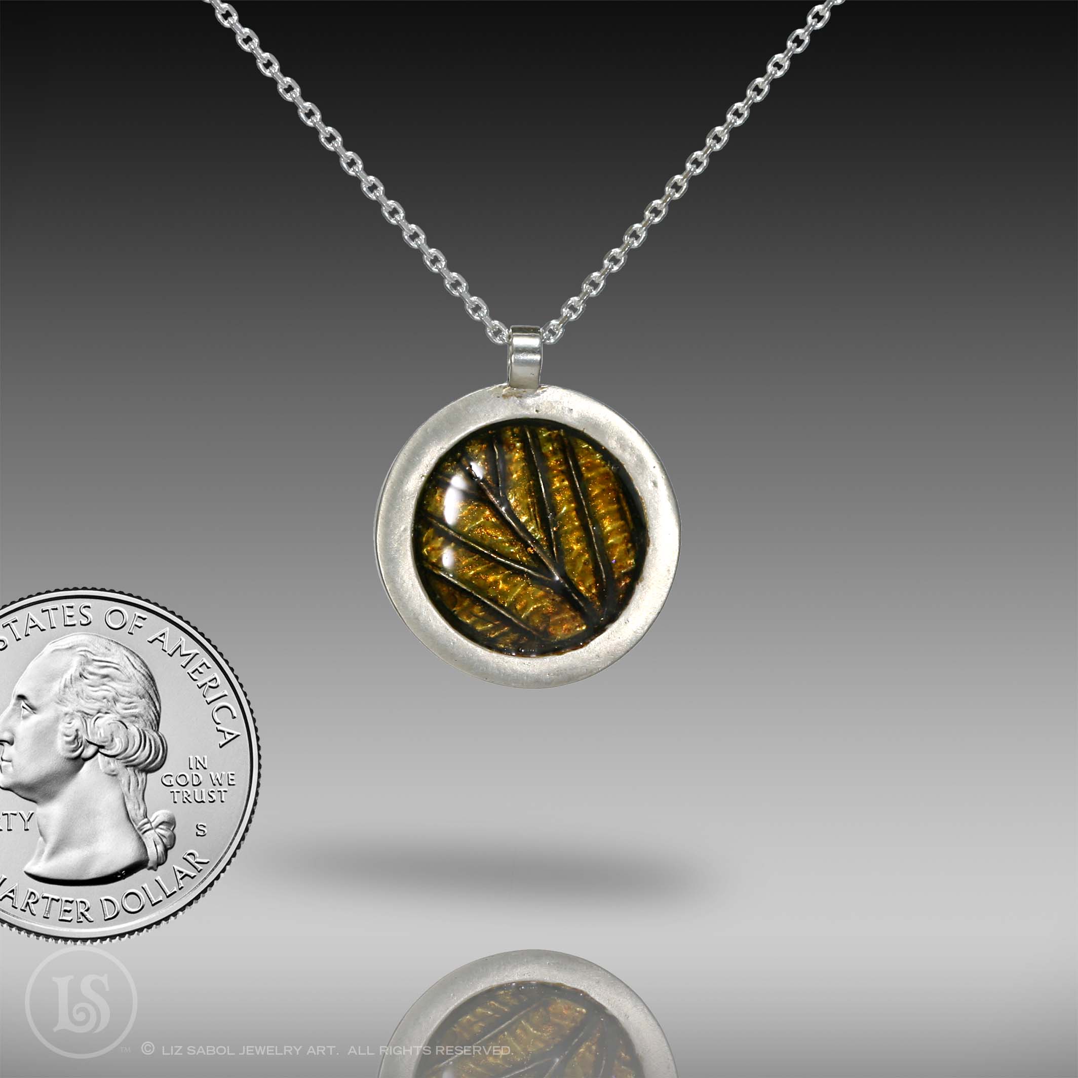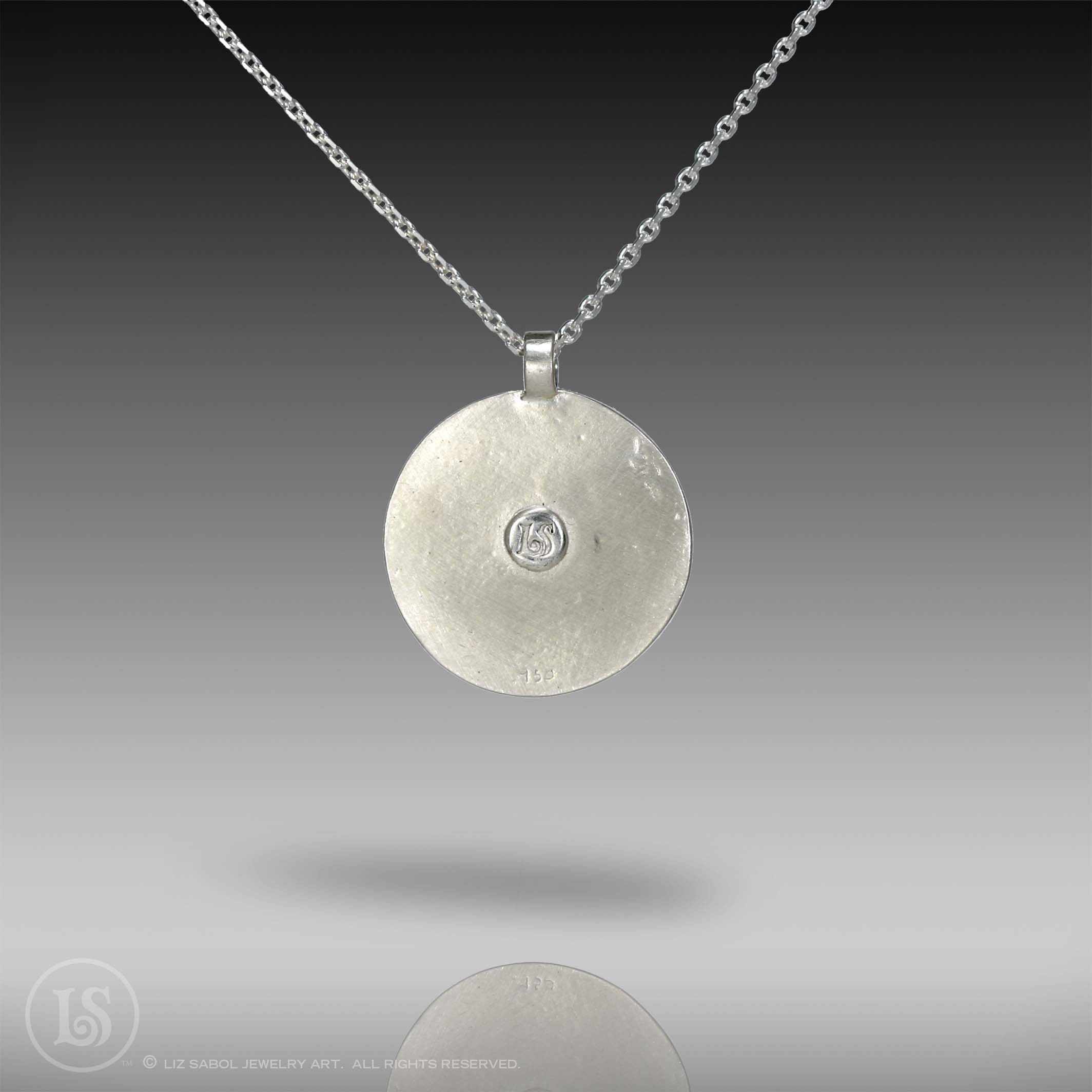 Handmade with sterling metal clay, featuring a texture that I designed, and bright shiny colors. Hand-painted and filled with resin. 18" sterling chain is included.