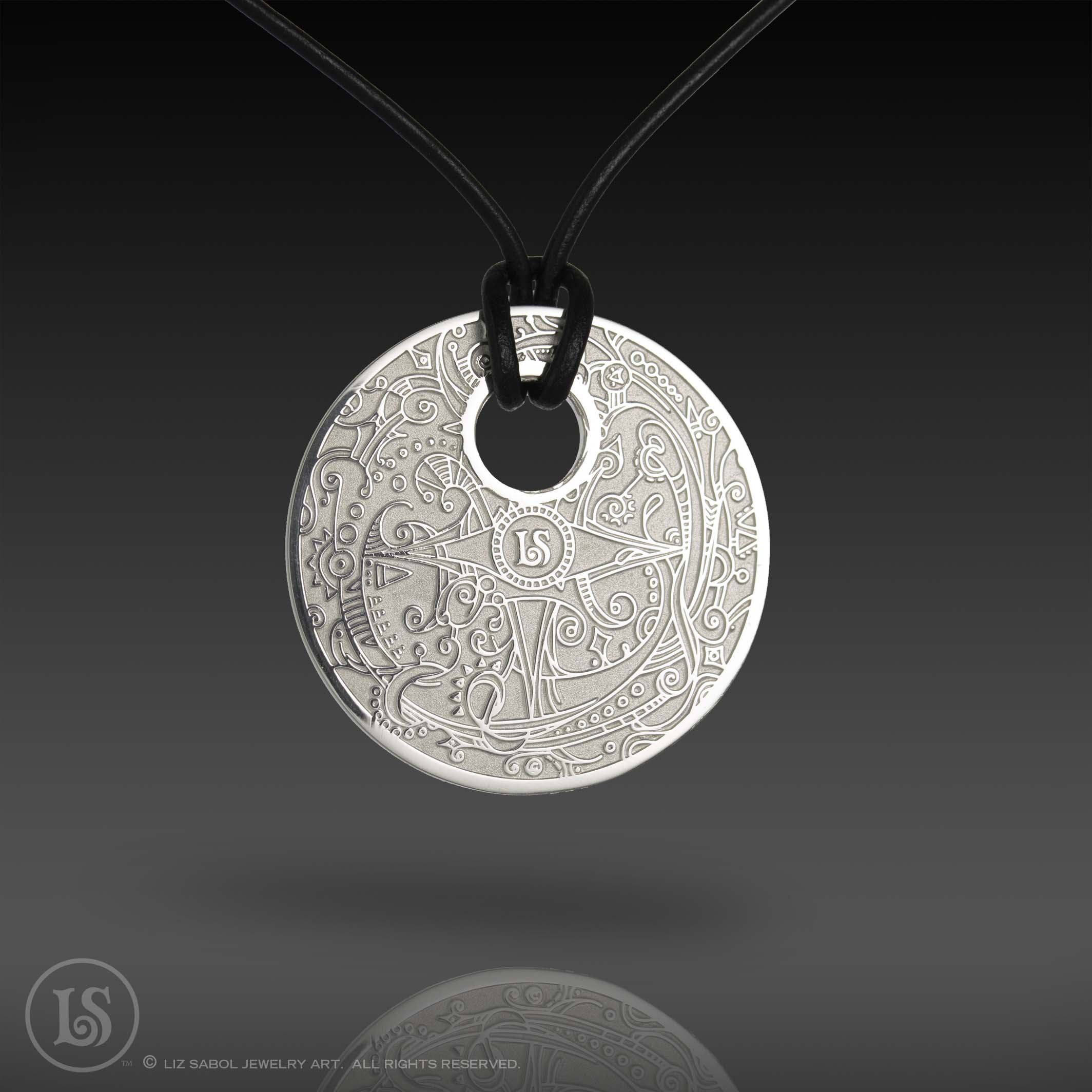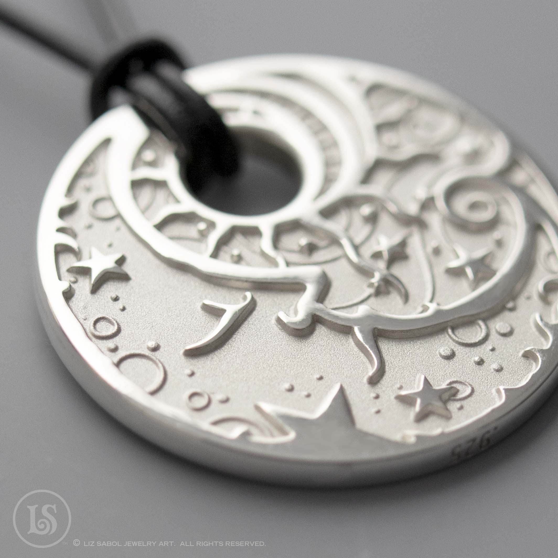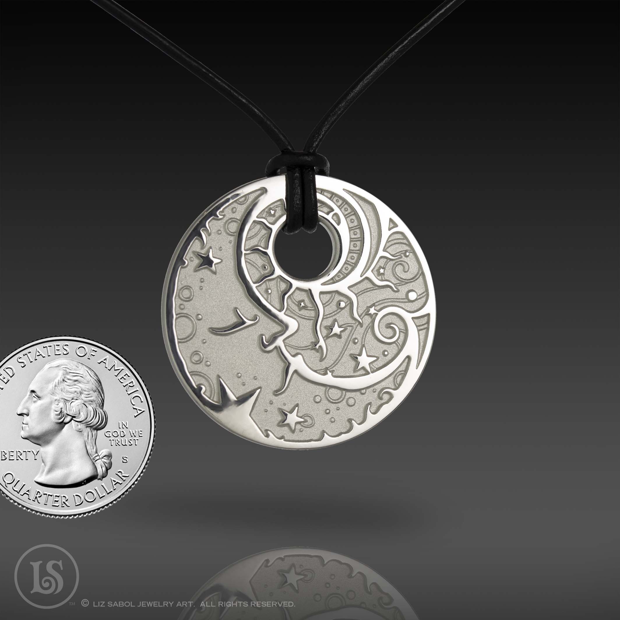 Solid sterling silver pendant with my Celestial Man in the Moon design in deep relief. 18" Leather cord included. Polishing cloth included.