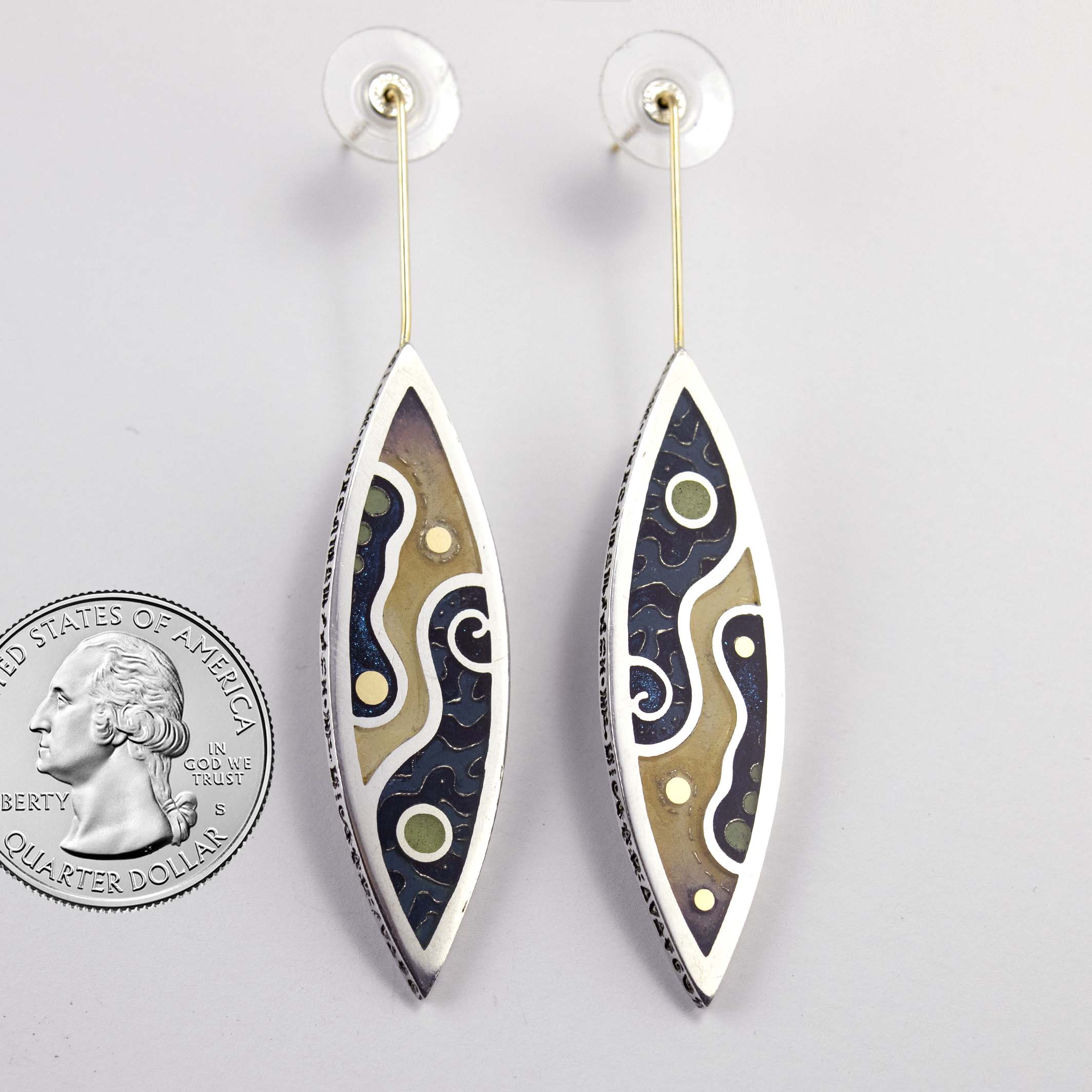 Jupiter Cresent Earrings, 960 Sterling Silver, 14K Gold