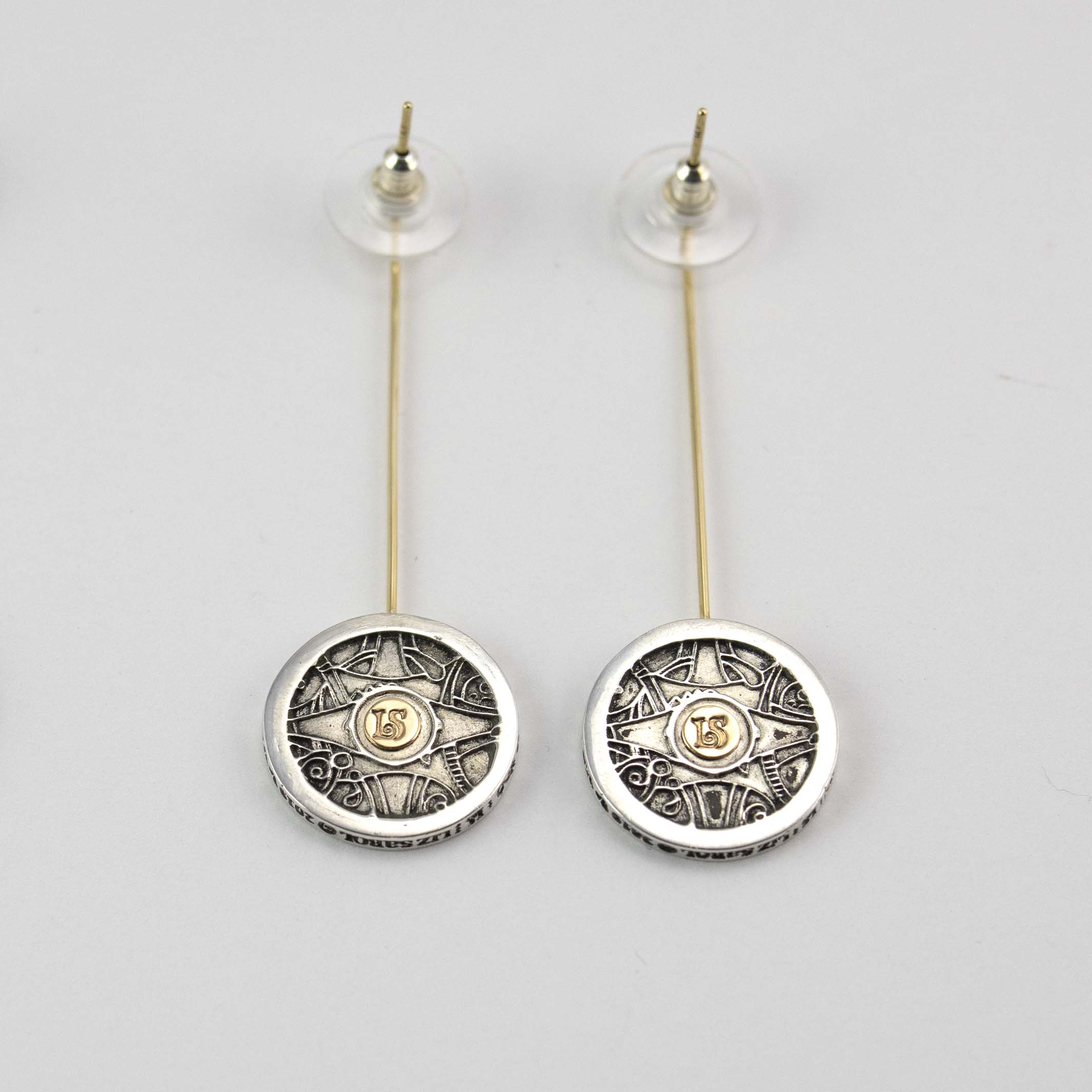 Jupiter Round 1 Earrings, 960 Sterling Silver, 14K Gold
