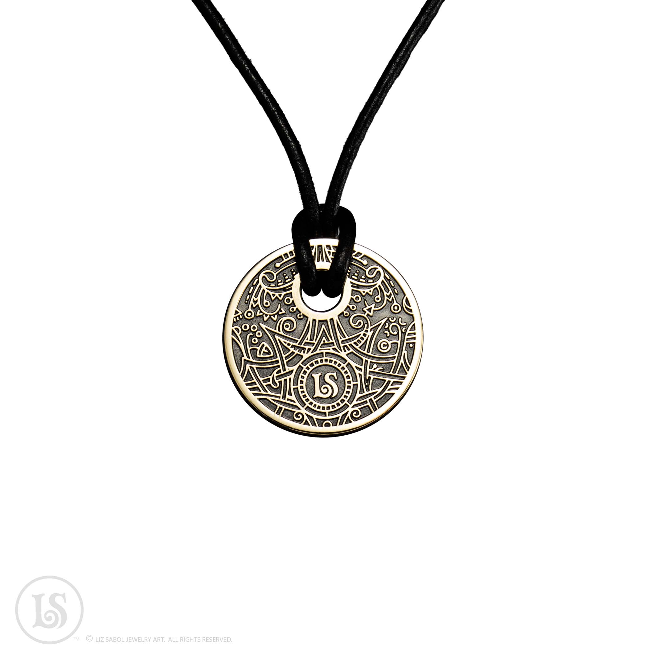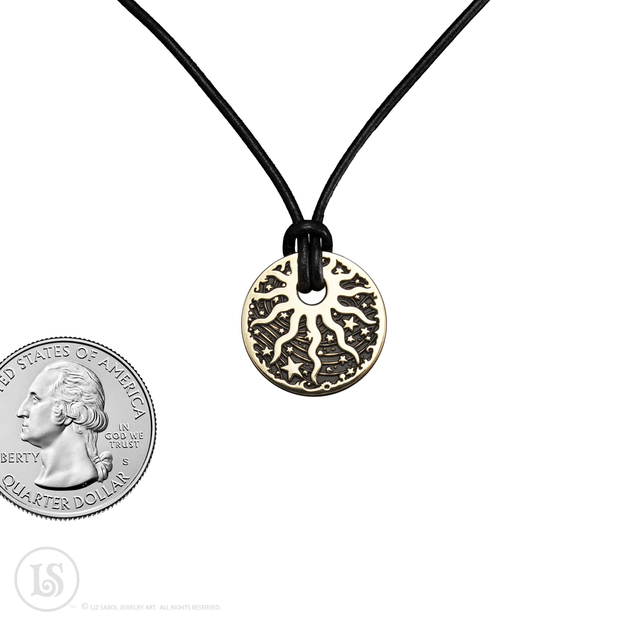 Comes on a 18" leather cord.