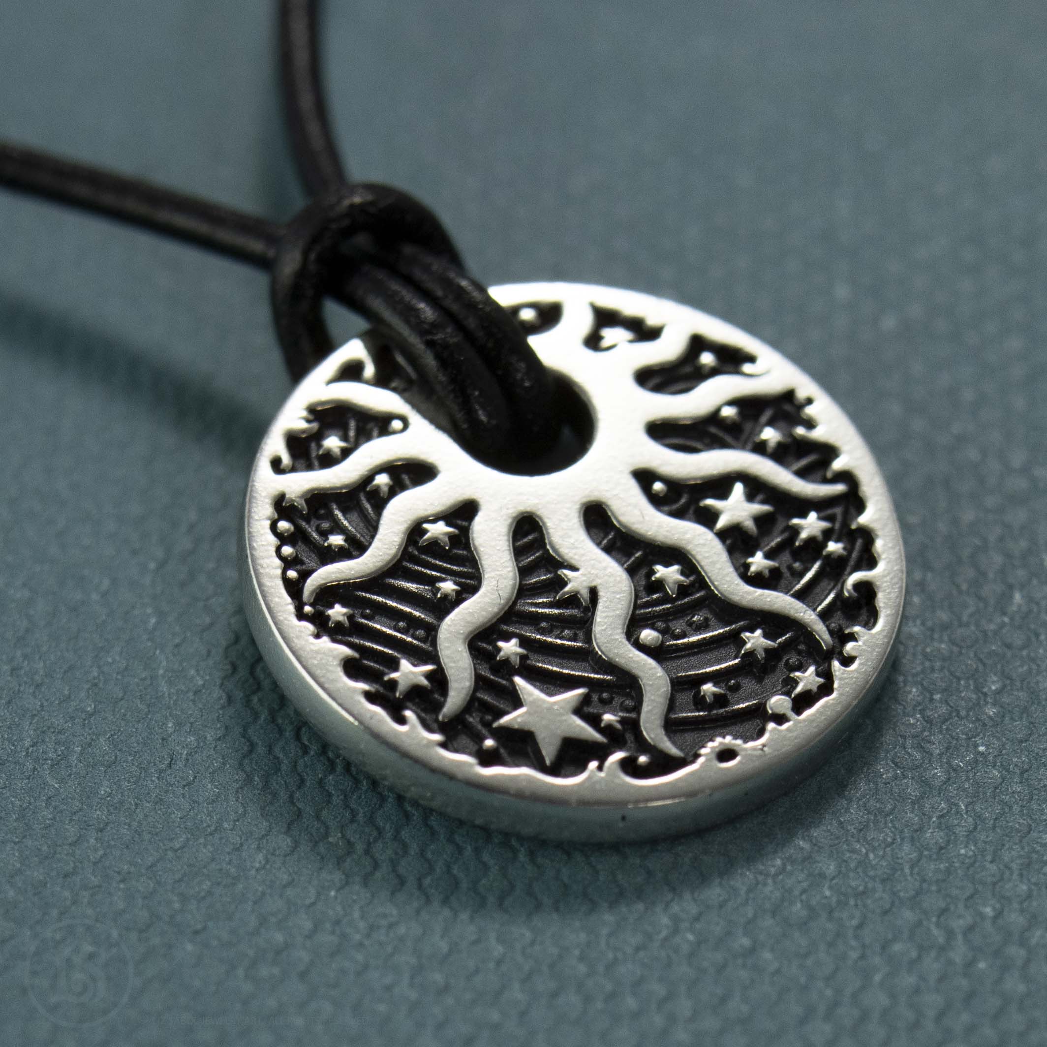 Celestial Sun Black, Small Pendant, Sterling Silver